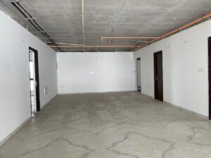 Common Areas: Double-height lobbies with reception and waiting areas, wide corridors with large windows for natural light and ventilation, and three high-speed passenger elevators plus one service/fire elevator per block.